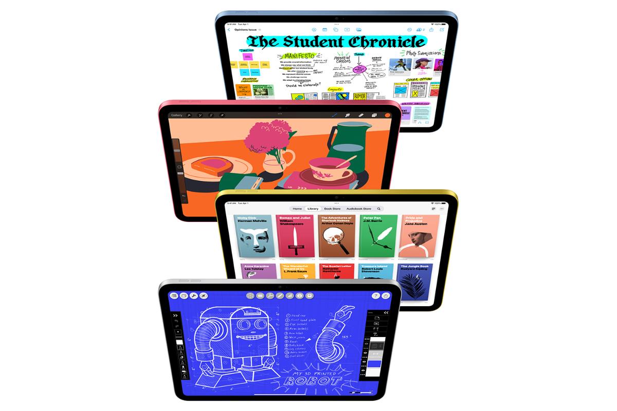 2. Acces­sories sold separately and subject to availability. Apple Pencil (1st generation) requires USB‑C to Apple Pencil Adapter to work with iPad (A16) and iPad (10th generation).
