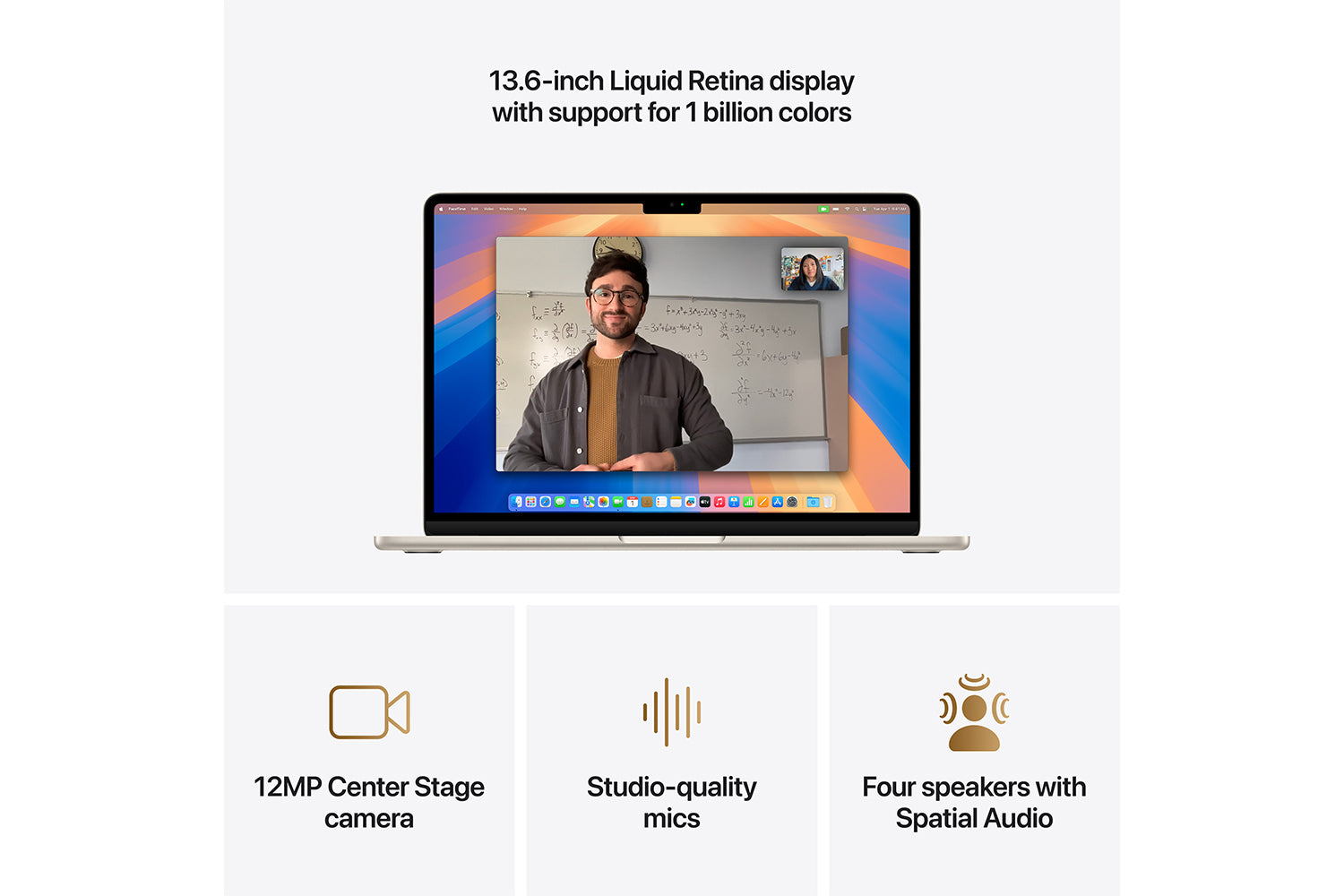 MacBook Air provides enhanced voice clarity in audio and video calls while minimising background noise.