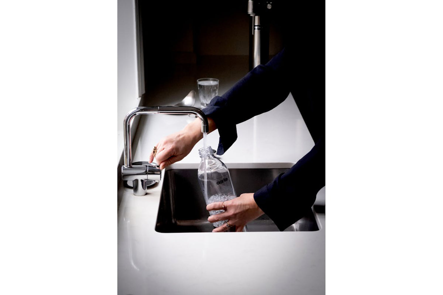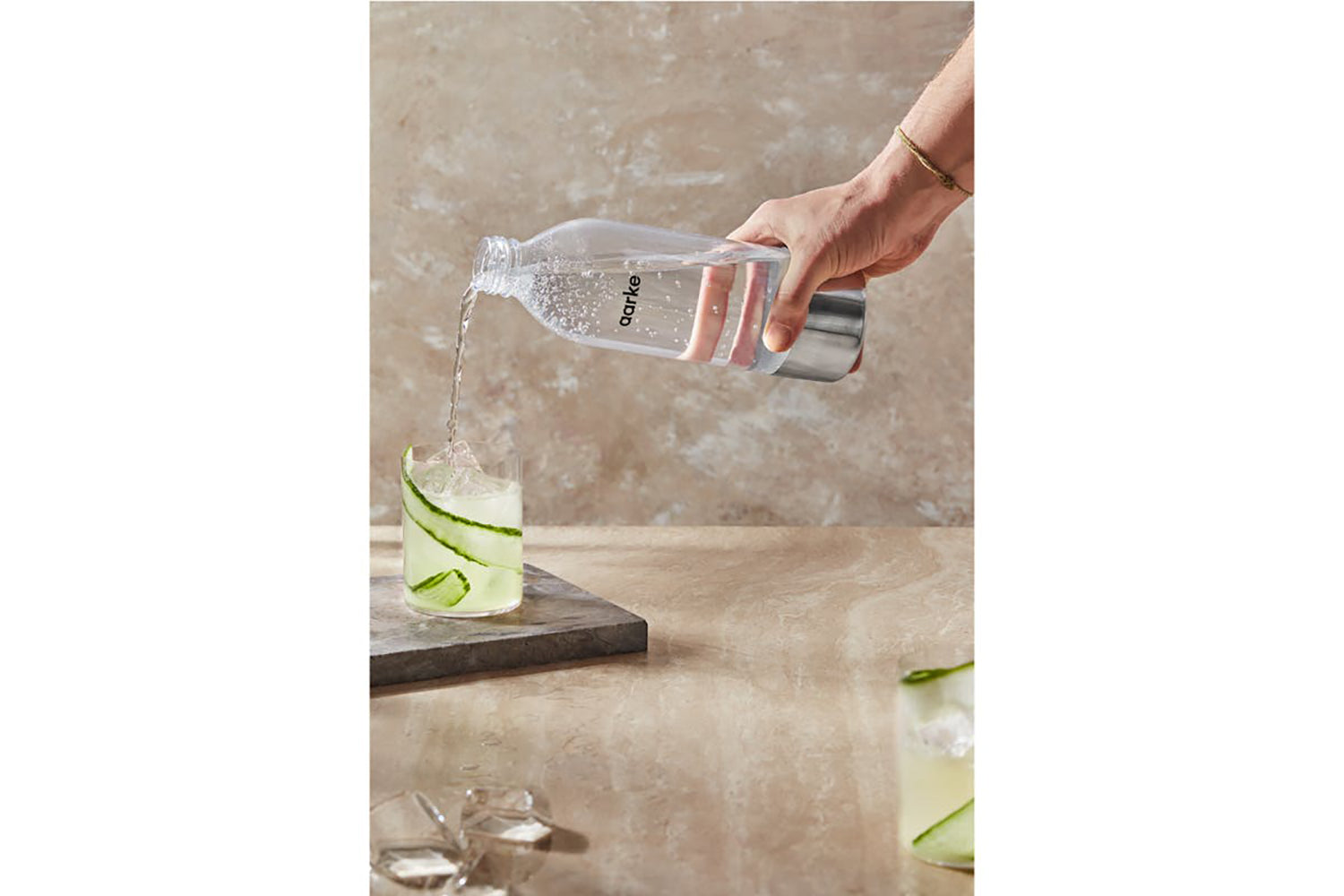 So, if you're regularly drinking sparkling water, the Aarke home carbonation system can reduce the size of your recycling pile by almost 100 small single use plastic bottles per cylinder.