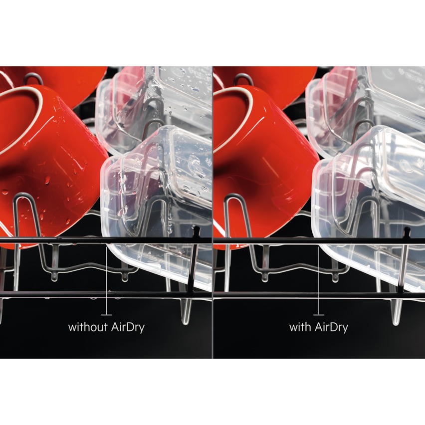 AirDry finshes drying with natural airflow instead of heat. The door automatically opens towards the end of the cycle, letting room-temperature air into the dishwasher.