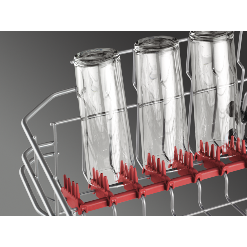 Glasses are often the most delicate items in your dishwasher, which means they need special care. The upper basket in this dishwasher has soft rubber spikes to support and protect glasses. The softspikes stabilise your glasses and mugs efficiently, preventing them from falling over and possibly breaking.