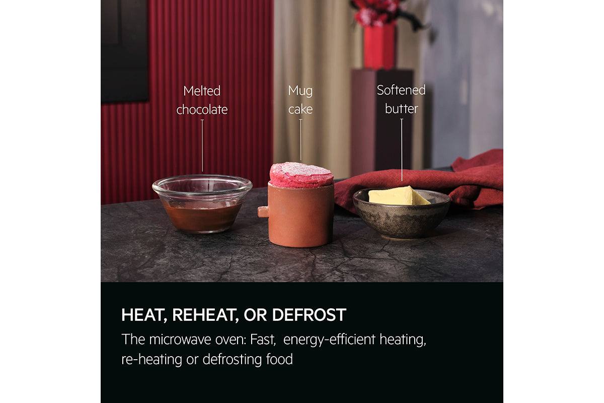 The Microwave with Grill: A crisp oven finish quickly and efficiently. From the crispy topping on a lasagne to the crackable lid of a crème brûlée, get the textures and tastes of conventional oven cooking with the speed of a microwave.