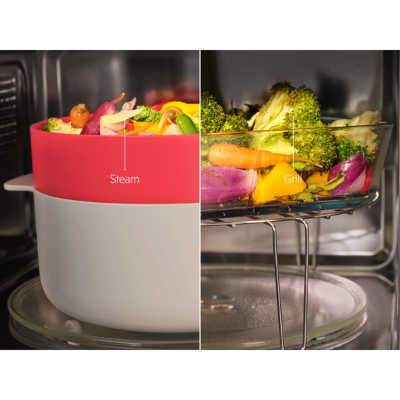 Everything you demand from a microwave, plus a grill function to finish the dishes with delicious crisp crusts. The included SteamSet lets you to efficiently prepare healthy meals in the microwave.