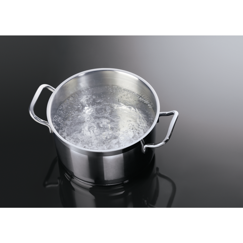 Aeg Intelligent Induction Hob technology heats pans and the food in them, but nothing else. The surface around the pan stays cool. So, if you accidentally touch the hob near the pans while you're cooking, your fingers are safe.