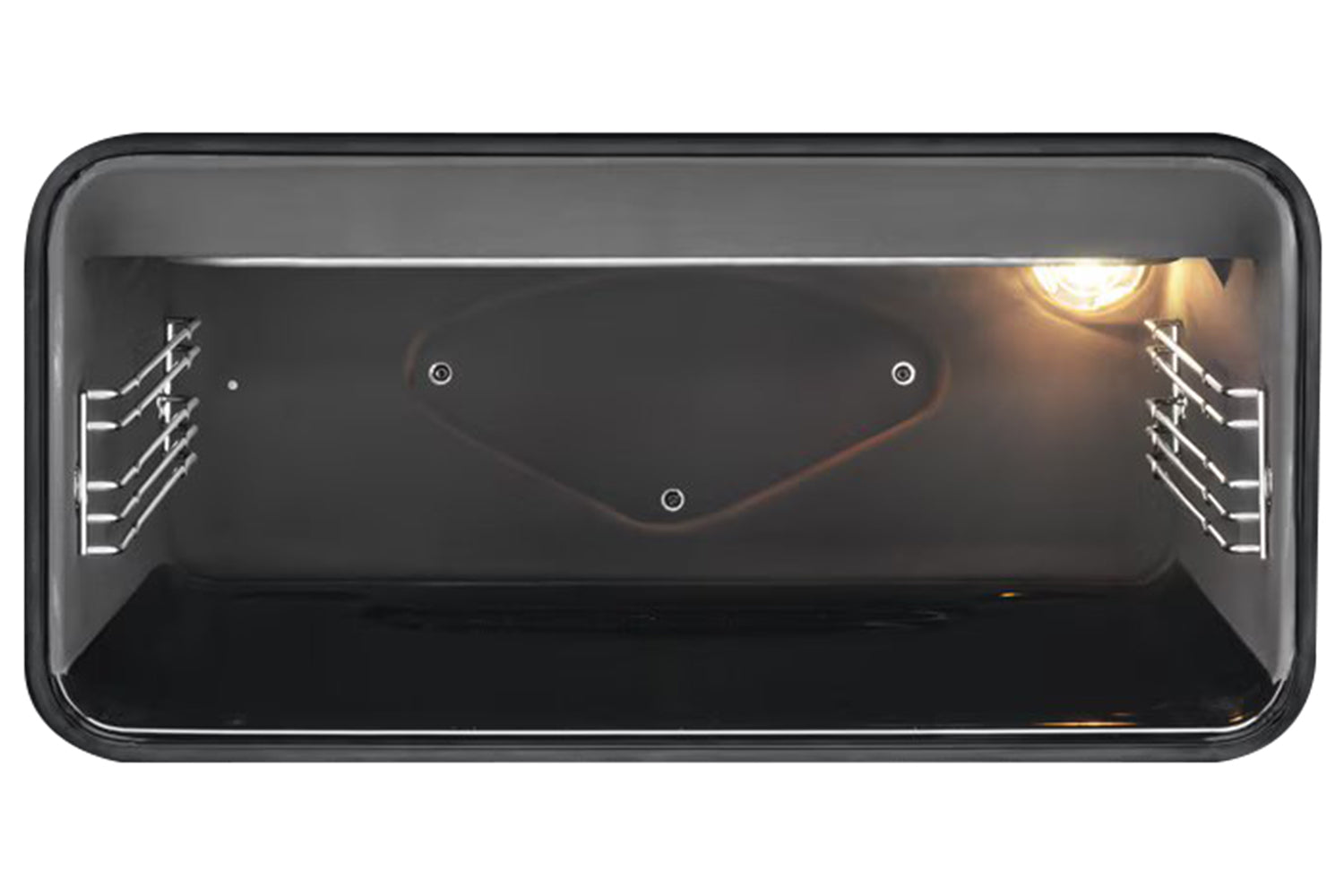 Catalytic coatings to the top, back and sides of the oven absorb the grease from cooking and with regular heating to 220°C the grease residue is burned away.
