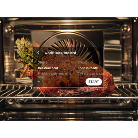 7000 MealAssist Oven with touch display guides you to perfect results, whatever your recipe, at the touch of a button. And the UI allows you to explore energy-efficient cooking without compromising taste by removing guesswork when preparing meals.