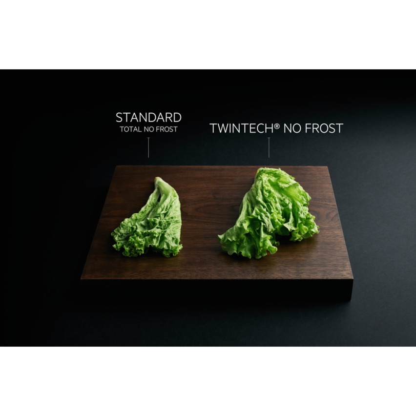 TwinTech No Frost has an advanced dual cooling system for the fridge and freezer. This technology ensures the freezer stays frost-free and the fridge humidity optimal, preventing the food from drying out.