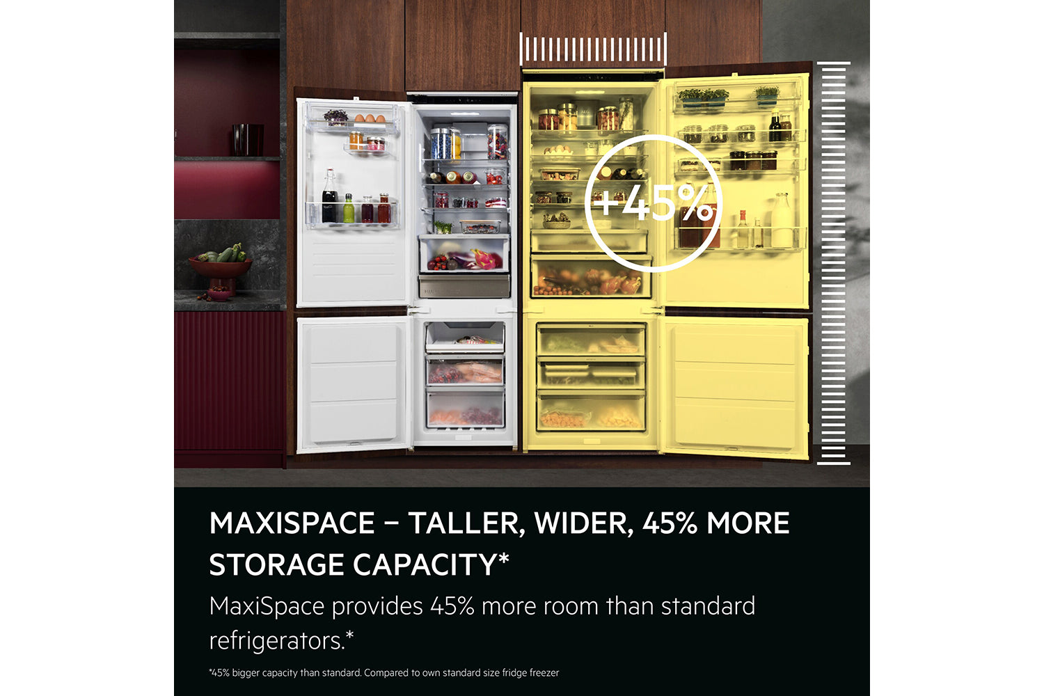 Thanks to MaxiSpace, you get 45% more capacity than a standard Fridge Freezer.* It’s taller and wider than regular refrigerators, offering plenty of space for numerous items.