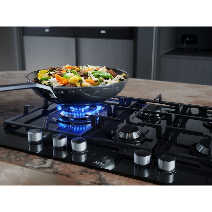 The design of the speed burners in this AEG gas hob allows for the flames to directly target the bottom of the pan, providing quicker heat and greater efficiency. These high-speed burners get you cooking up to 20% faster.