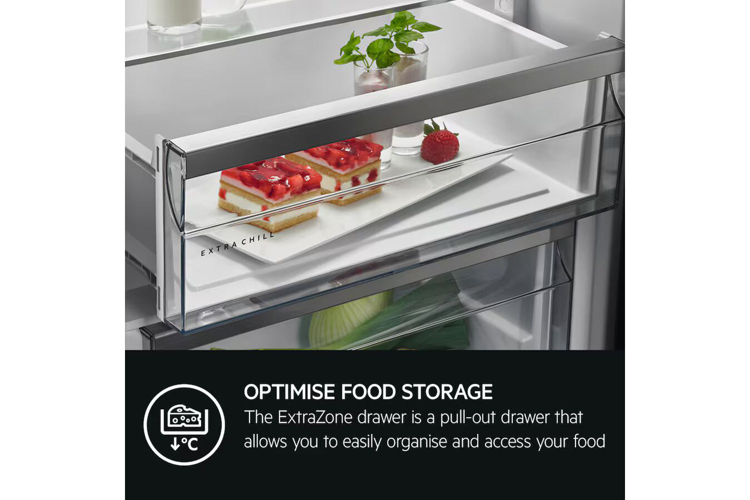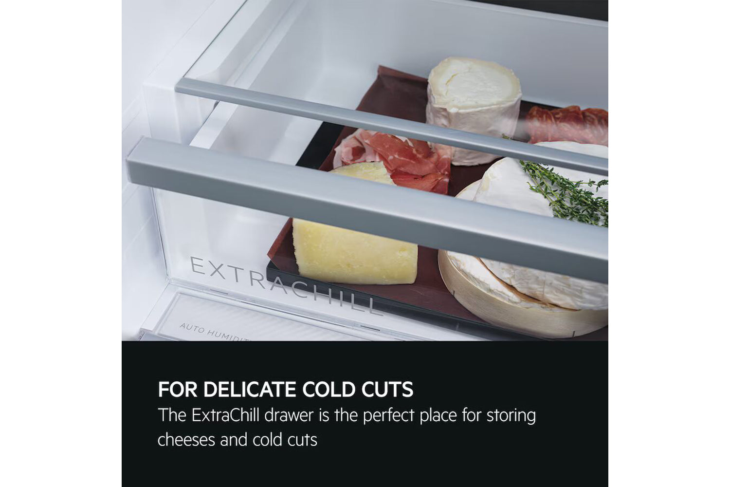 ExtraChill protects your meat and fish thanks to the multi-air circulation channels in the drawer and the lower temperature.