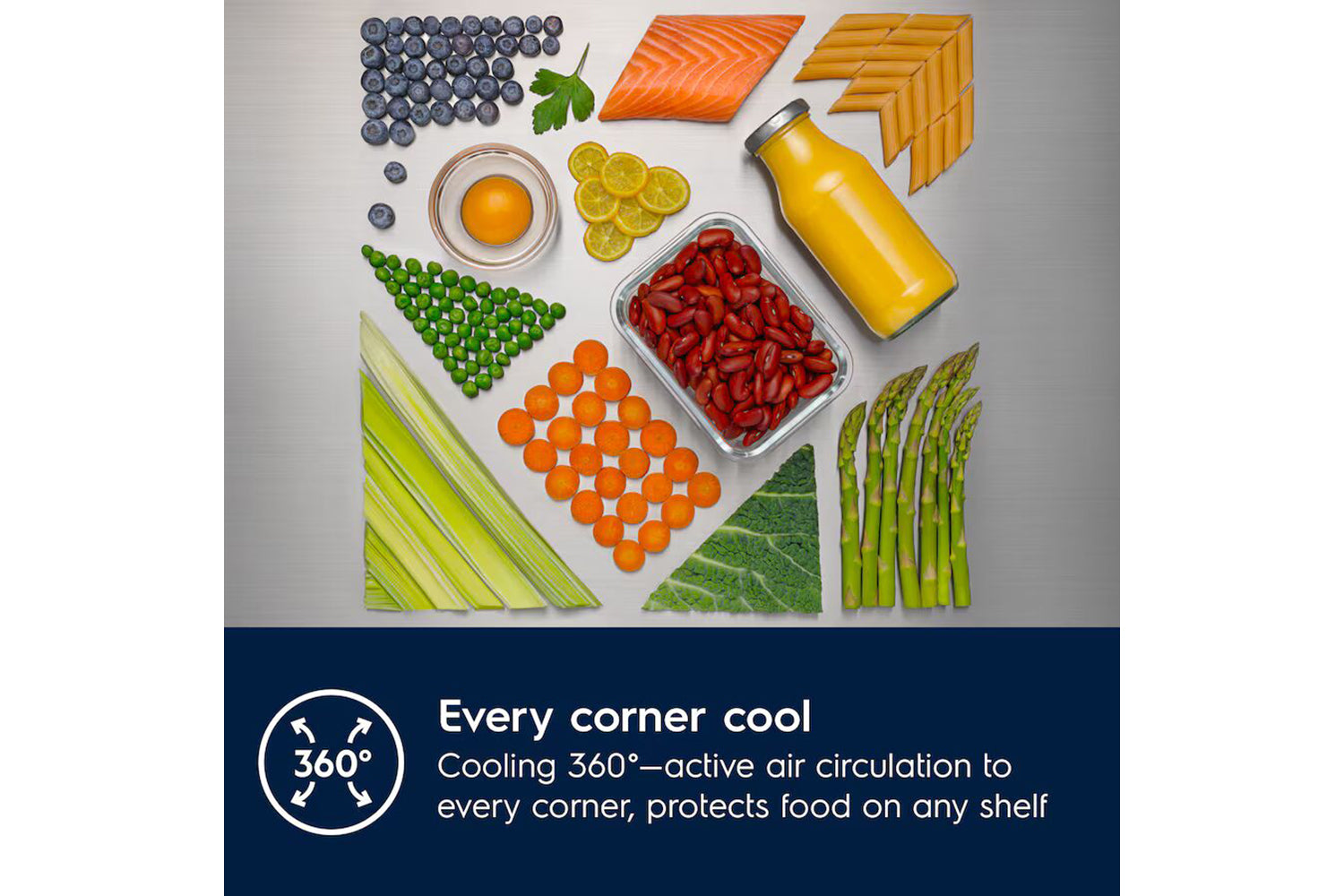The 8000 Cooling 360° Fridge Freezer has multiple air channels to deliver consistent cooling. This protects food on every shelf and can help to reduce food waste by 28%*. Stainless steel creates an elegant, premium look for your kitchen.