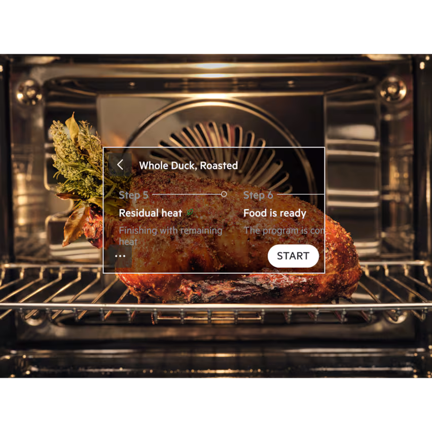 The CookSmart Touch display with swipe navigation lets you receive cooking tips and select oven functions. And with energy-saving tips, you can cook more efficiently. Your favourite dishes and methods can be saved on the app and sent to the oven at the touch of a button.