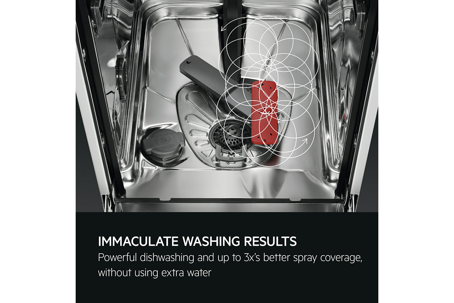Even closely stacked or larger dishes receive deep cleaning with SatelliteClean. The innovative spray arm guarantees corner-to-corner cleaning. With up to 3x better spray coverage providing stunning results across every surface.