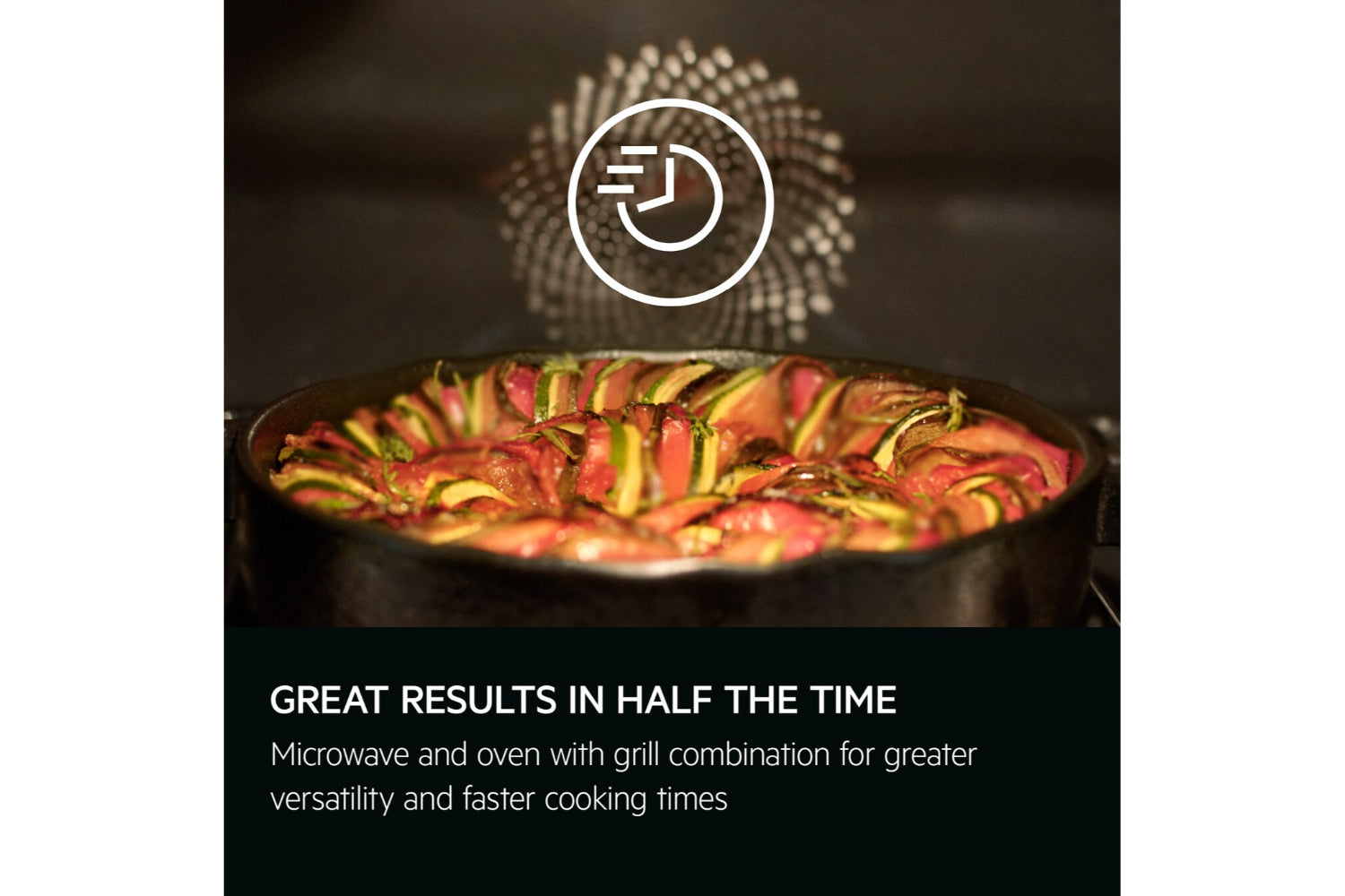 Microwave and oven merges hot air circulation with advanced microwave technology for grilling, roasting and baking up to 50% faster than a conventional oven.