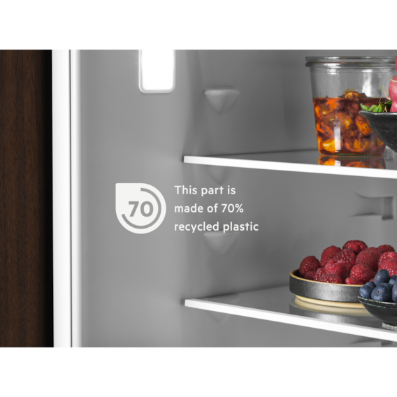 A new era of cooling is here. Introducing Aeg fridge-freezer with an inner lining made of 70% recycled plastic. Plastic from discarded refrigerators is used to make new refrigerators, helping reduce waste thorugh circularity.