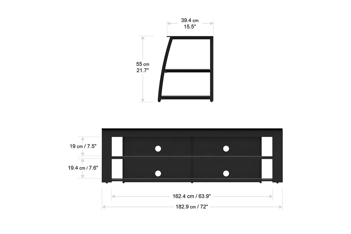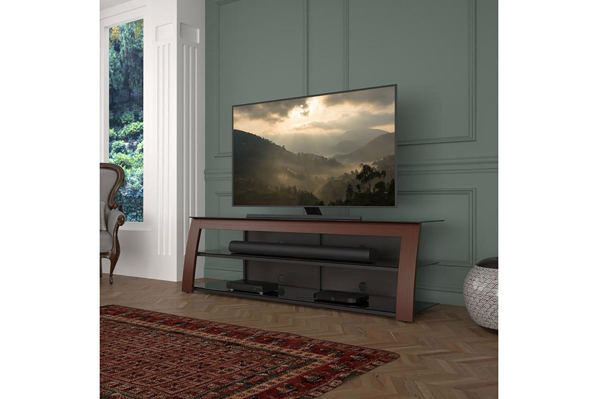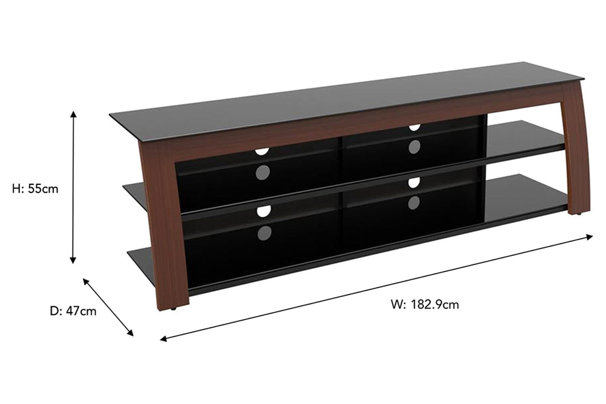 A smooth blend of walnut wood and black glass, Kivu supports TVs up to 90 inches whilst offering ample open storage for your AV accessories, it’s enclosed rear panel and cable management holes mean unsightly cables are a thing of the past.