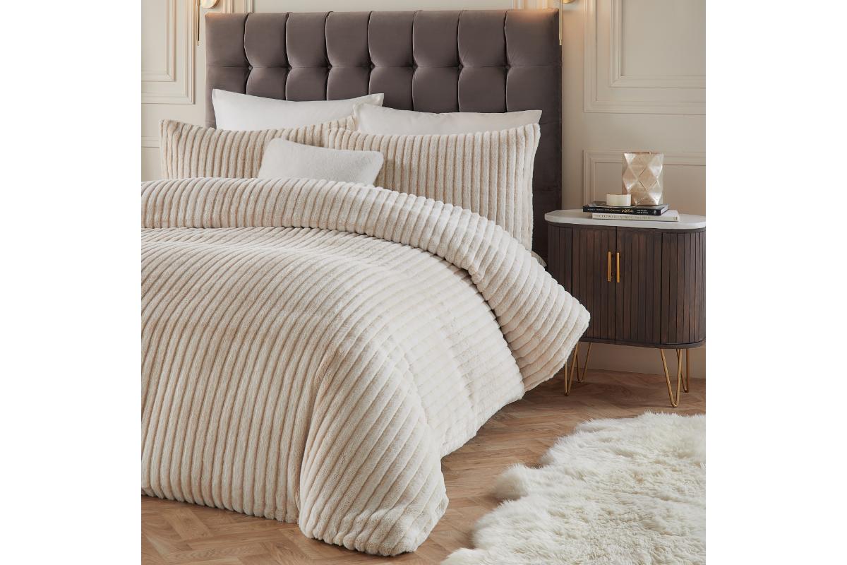 Featuring a soft, striped faux fur front, this duvet cover offers a rich texture and an opulent feel, perfect for creating a relaxed yet refined atmosphere in your bedroom. The reverse boasts a smooth finish that complements the front with understated elegance. Whether you're unwinding from a long day or curling up with a good book, the Alpine duvet cover transforms your space into a haven of cosiness and style. Available in multiple colours and sizes, perfect for every room in your home.