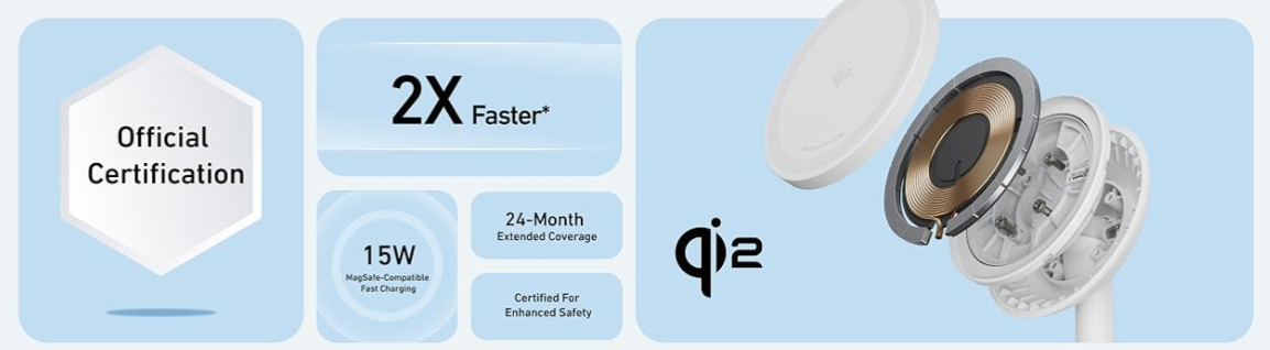 Experience fast charging with a 15W wireless output that matches the performance of magsafe technology.
