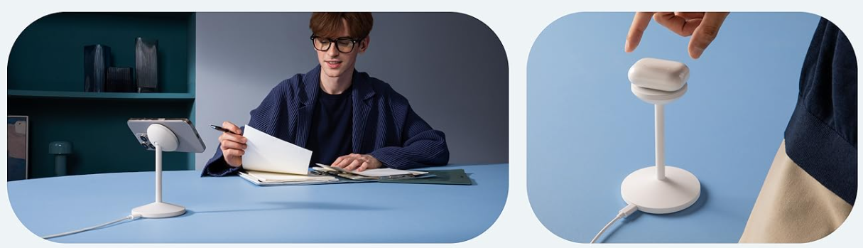 *the charging surface can be adjusted up to 70 degrees; set it horizontally to charge airpods, as simultaneous charging of devices is not supported.