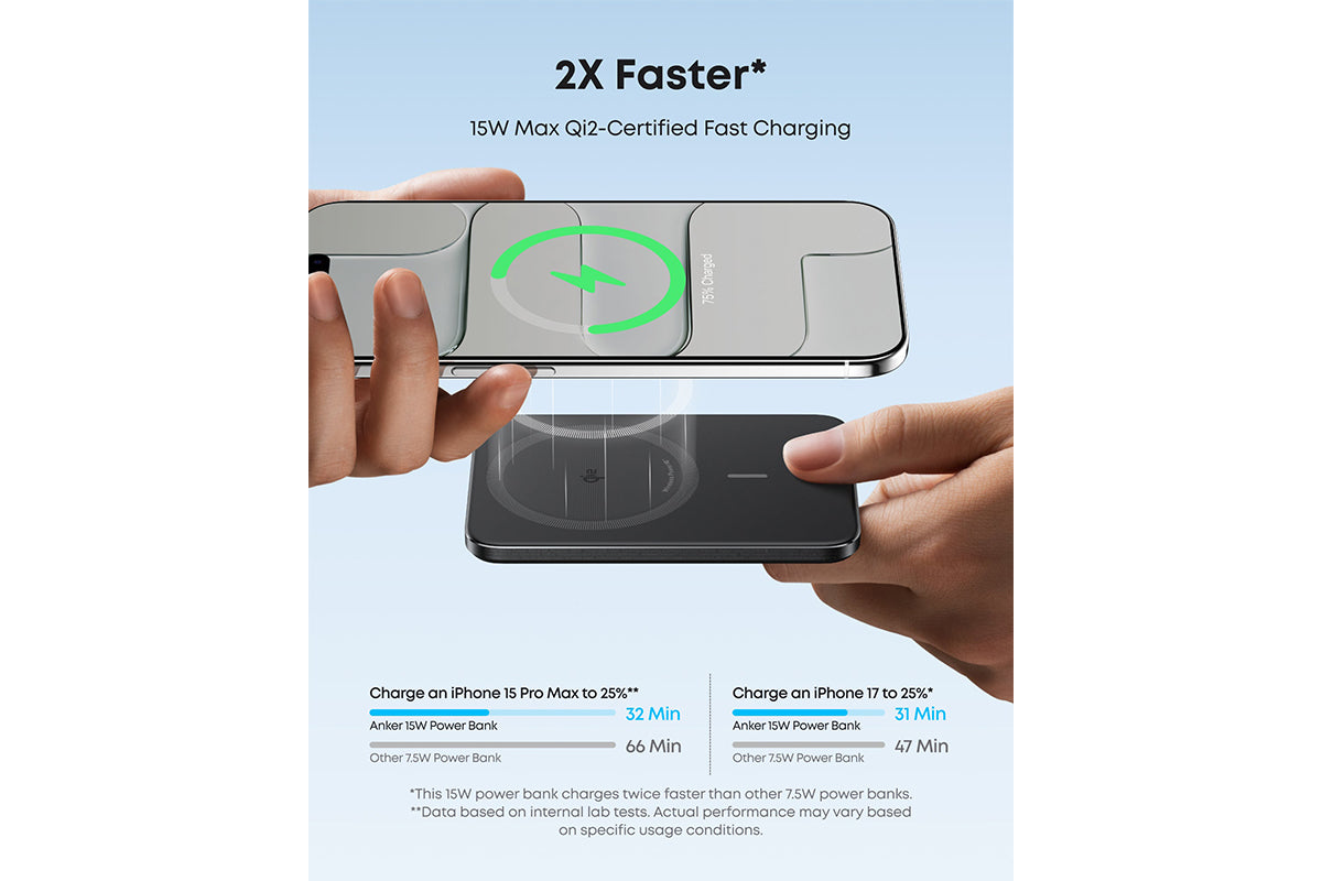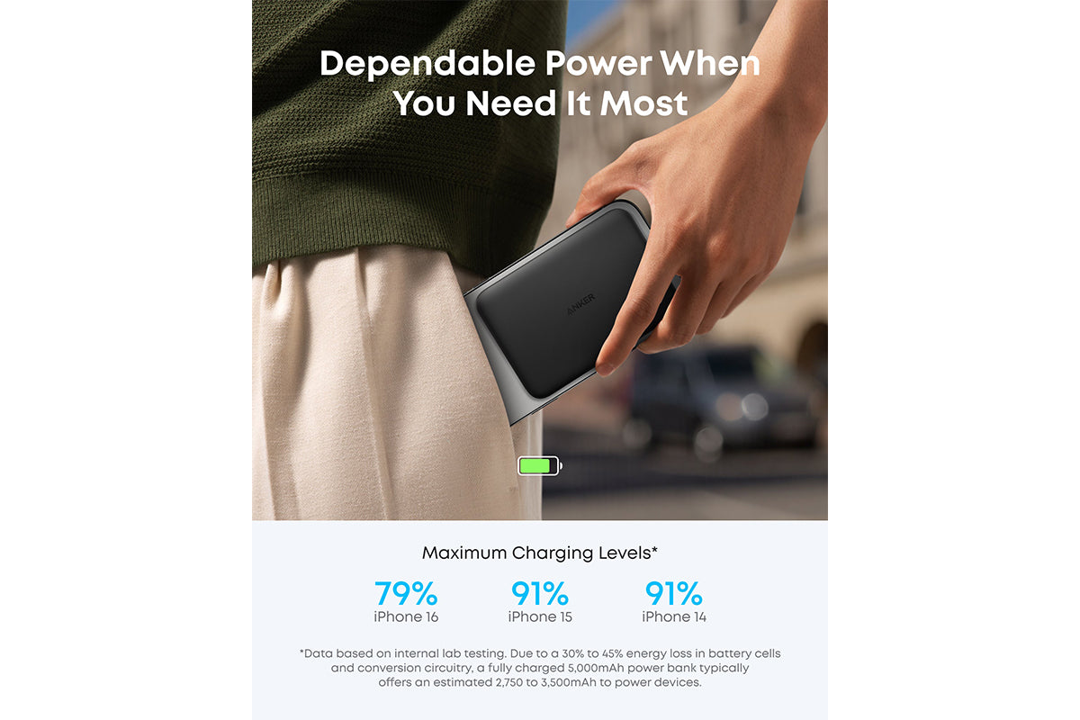 With 15W Max MagSafe-compatible fast charging, Anker Nano Power Bank provides high efficiency for mobile charging, quickly powering up an iPhone 16 Pro to 25% in just 42 minutes.