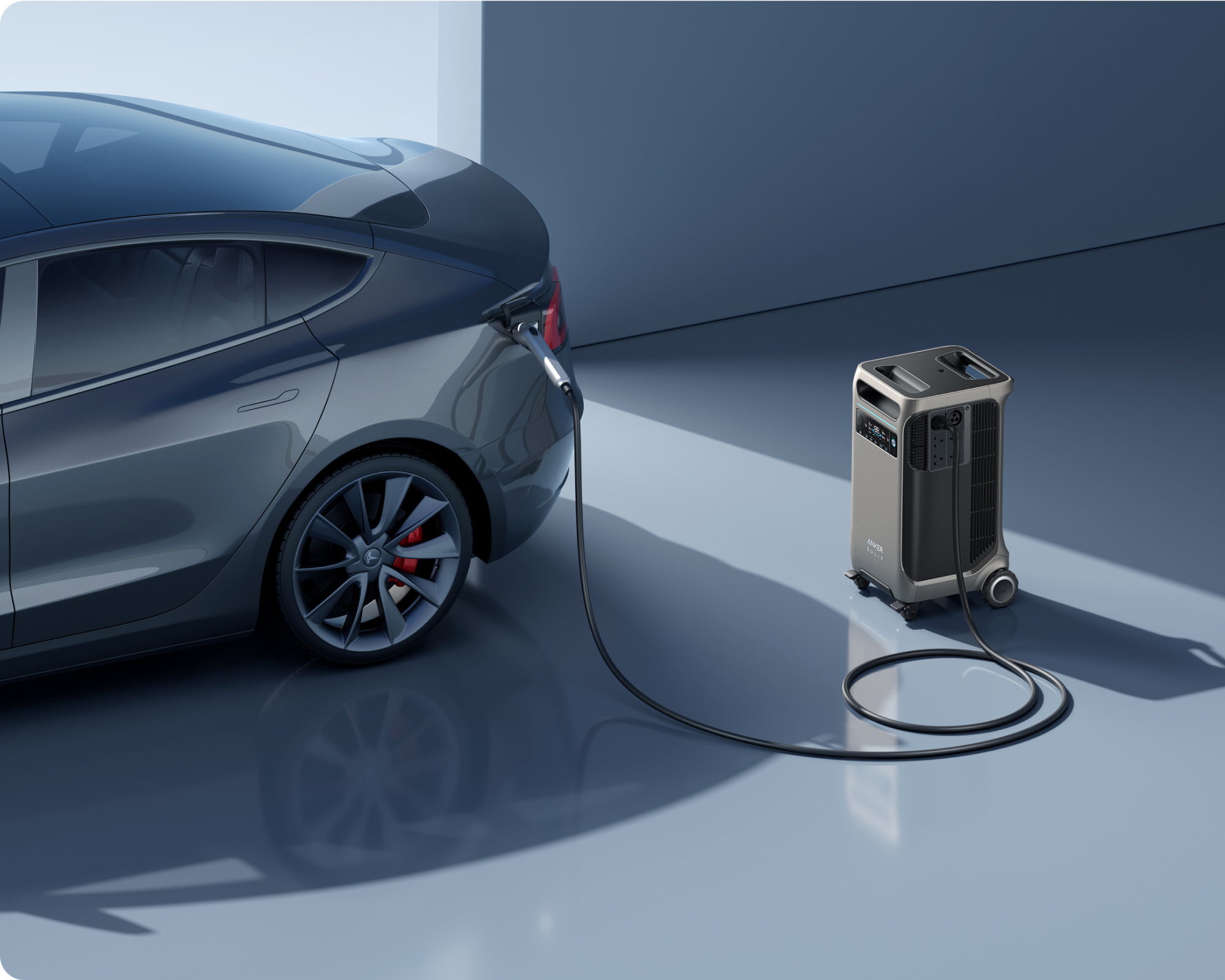 Avoid complicated grounding accessories and just connect your EV charger cable to Anker SOLIX F3800. You can charge your EV. That's long enough for around a 20km ride.