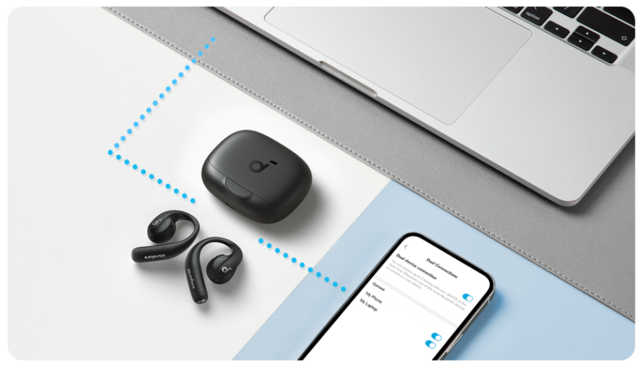 AeroFit Pro supports dual connection allowing simple switching between two devices with the soundcore app.