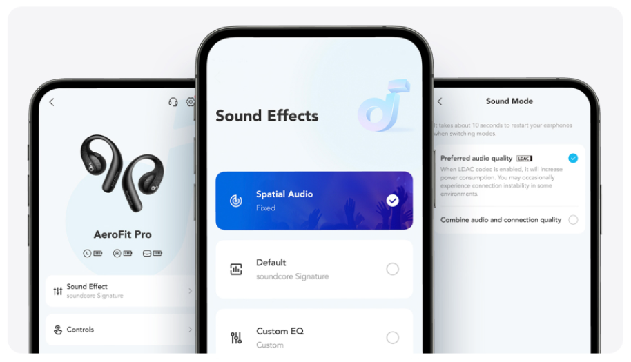 Create your own listening experience with the soundcore app. Activate Spatial Audio, LDAC mode, and customize button controls and EQ settings.