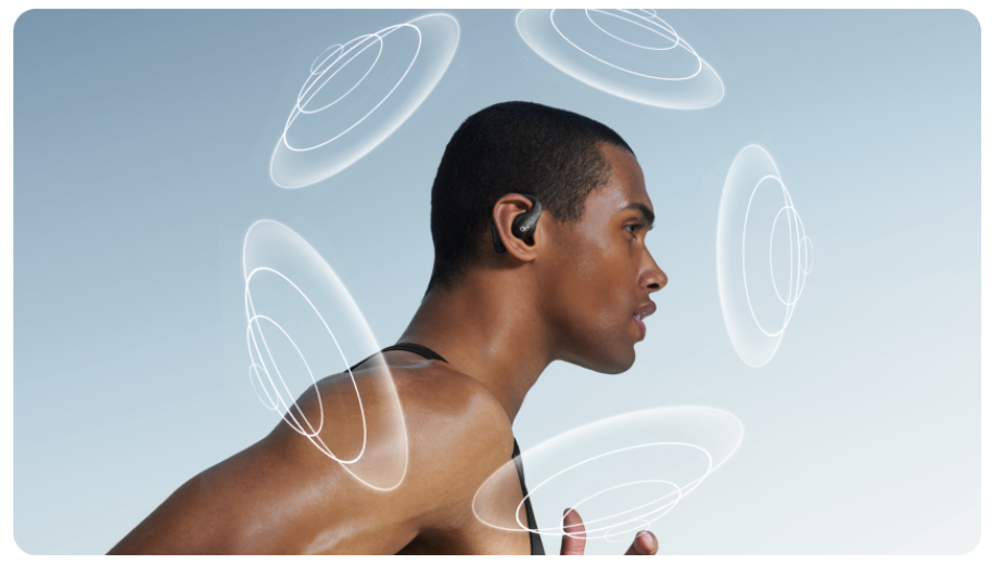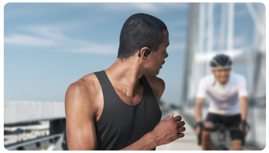 AeroFit Pro lets you stay connected with the world around you thanks to its open-ear design. Stay safe when working out or going for a quick run.