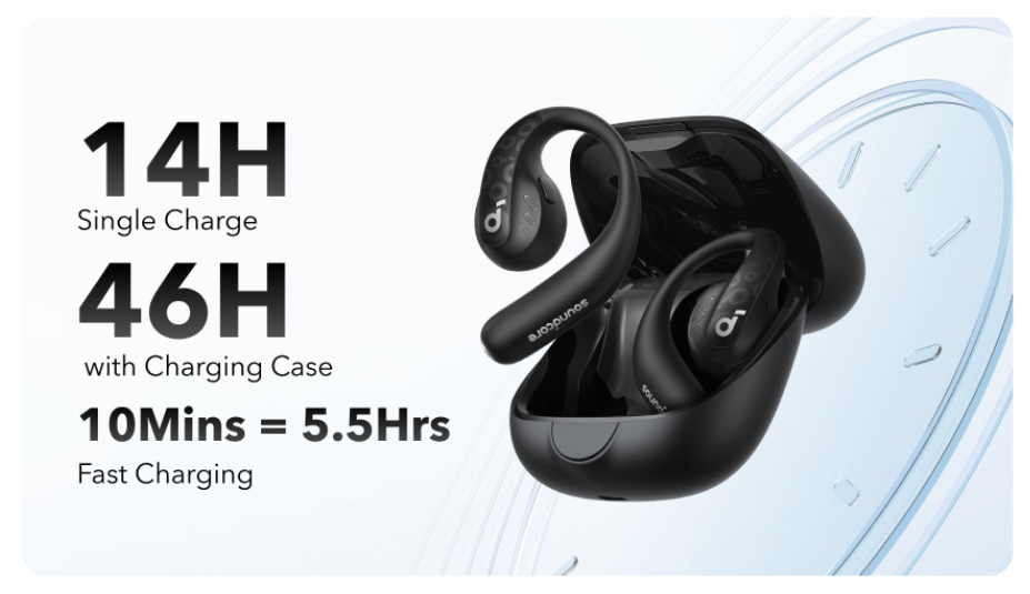 1. Battery playtime is obtained from testing in the soundcore laboratory in continuous audio playback at 50% volume. The actual playtime may vary by volume, audio source, environmental interference, usage, etc.