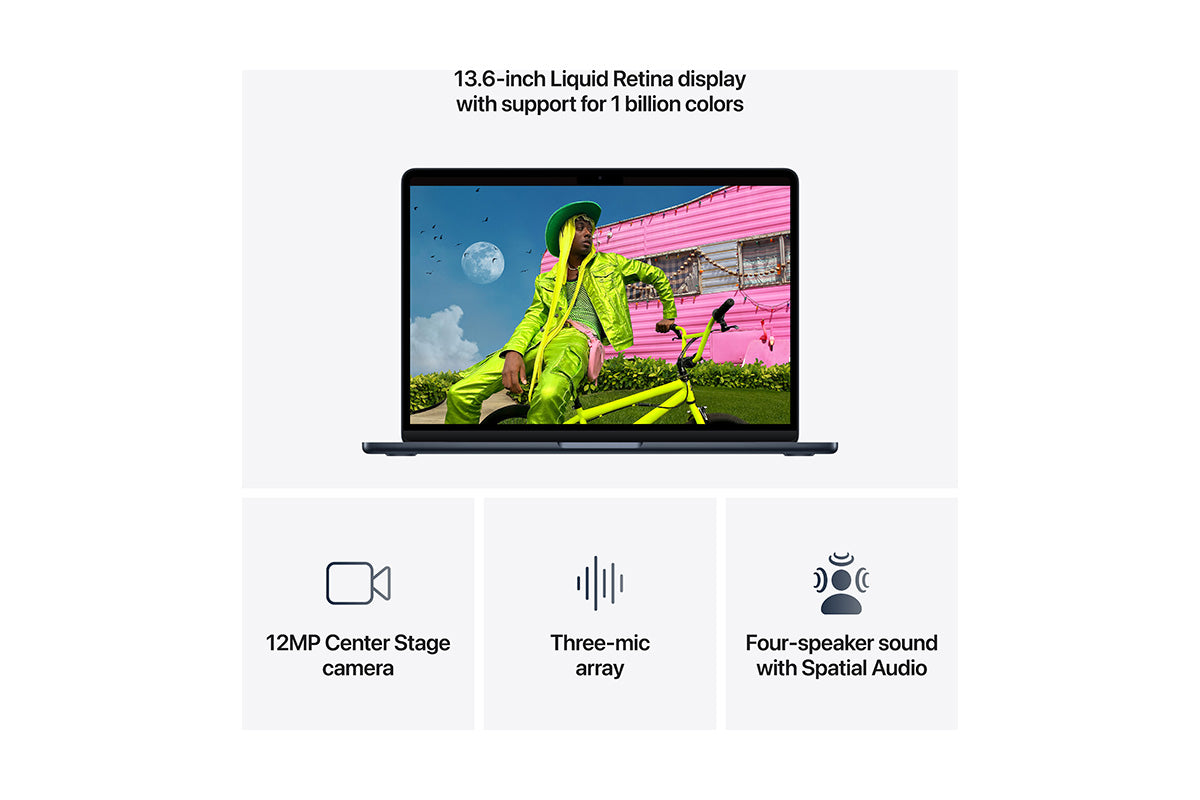 • A BRILLIANT 13.6 INCH DISPLAY3— The Liquid Retina display supports 1 billion colours. Photos and videos pop with rich contrast and sharp detail, and text appears super crisp.