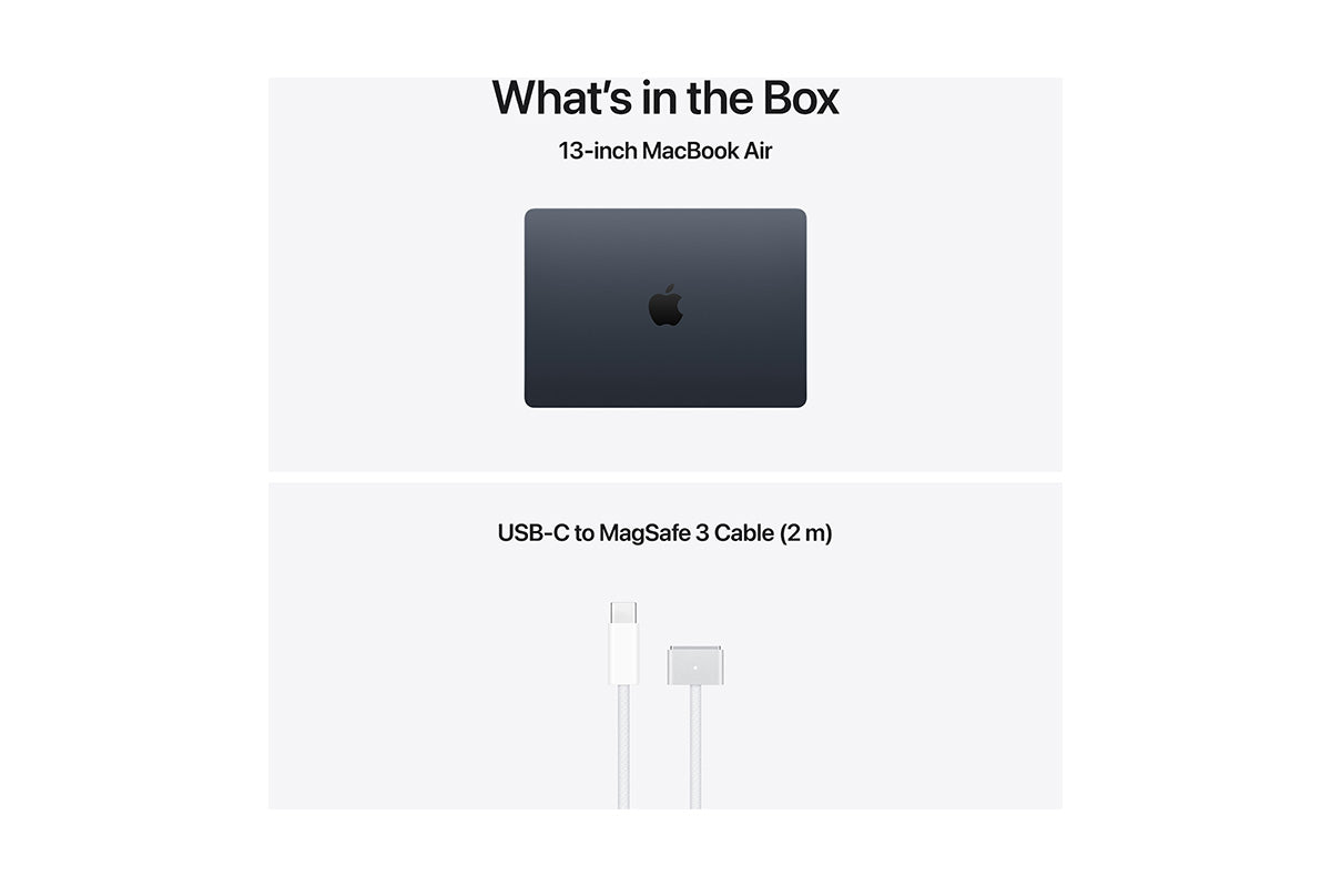 • POWER ADAPTERS — Please be aware: MacBook Air (13-inch) comes with a USB C to MagSafe 3 charging cable, but does not include a power adapter. A USB C power adapter or other USB PD power source that can provide 30W or higher is required to charge this device. For optimal charging, Apple recommends pairing this Mac with the Apple 30W USB C Power Adapter, or the 70W USB C Power Adapter to take advantage of fast charge (charging up to 50% in 30 minutes).6