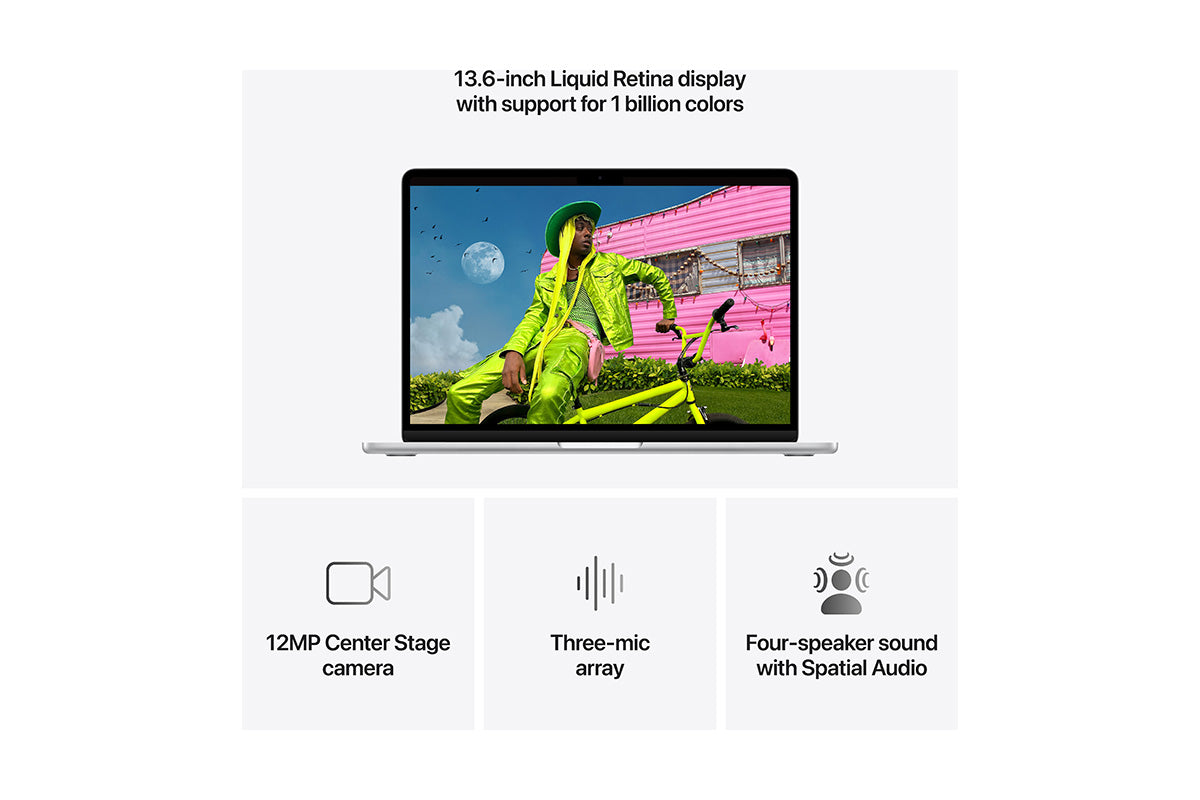 3Screen size is measured diagonally. The display on the 13-inch MacBook Air has rounded corners at the top. When measured as a standard rectangular shape, the screen is 13.6 inches diagonally (actual viewable area is less).