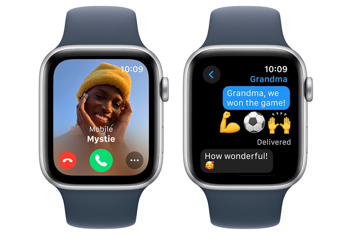 Stay Connected - Send a text, take a call, listen to music and podcasts, use Siri or call for help with Emergency SOS.[1] Apple Watch SE (GPS) works with your iPhone or Wi-Fi to keep you connected.