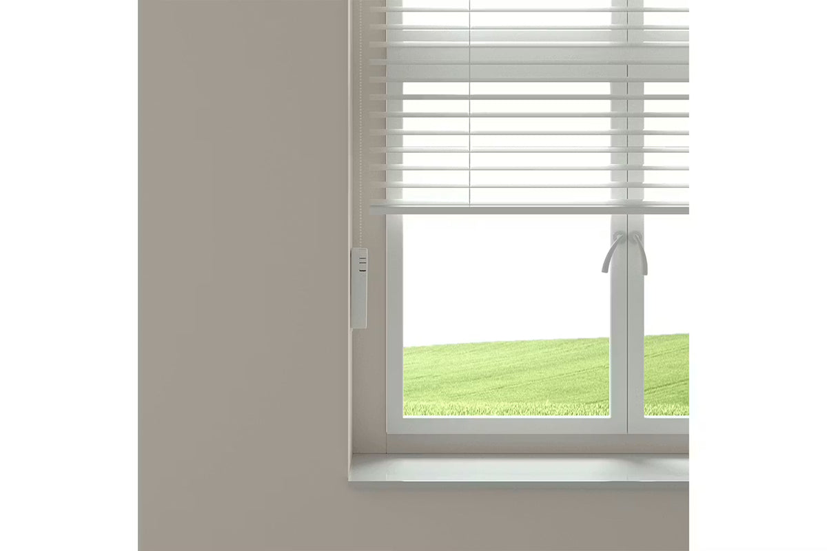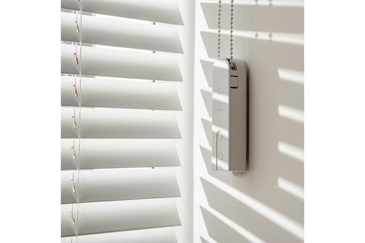 Just screw the device to the wall, attach the adapter, insert the beaded cord of your roller shade, and the device will be ready to be connected.