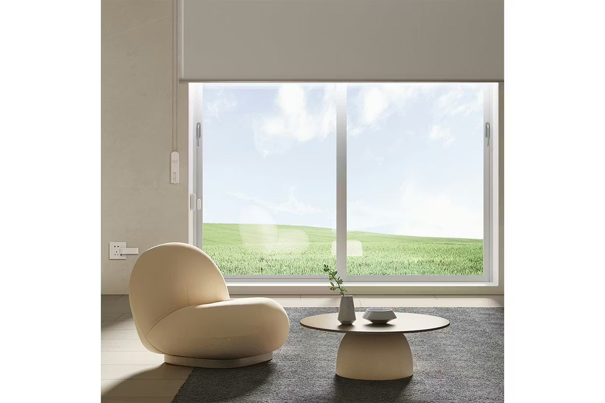 When the sunlight is too bright in the afternoon, it is detected by the M1S Hub’s built-in illumination sensor and the roller shade will unroll automatically, making you more comfortable and saving energy on cooling. In the evening, the roller shade will open automatically when the Door and Window Sensor detects that you are back home. (Aqara Roller Shade Driver E1 + Hub M1S + Door and Window Sensor)