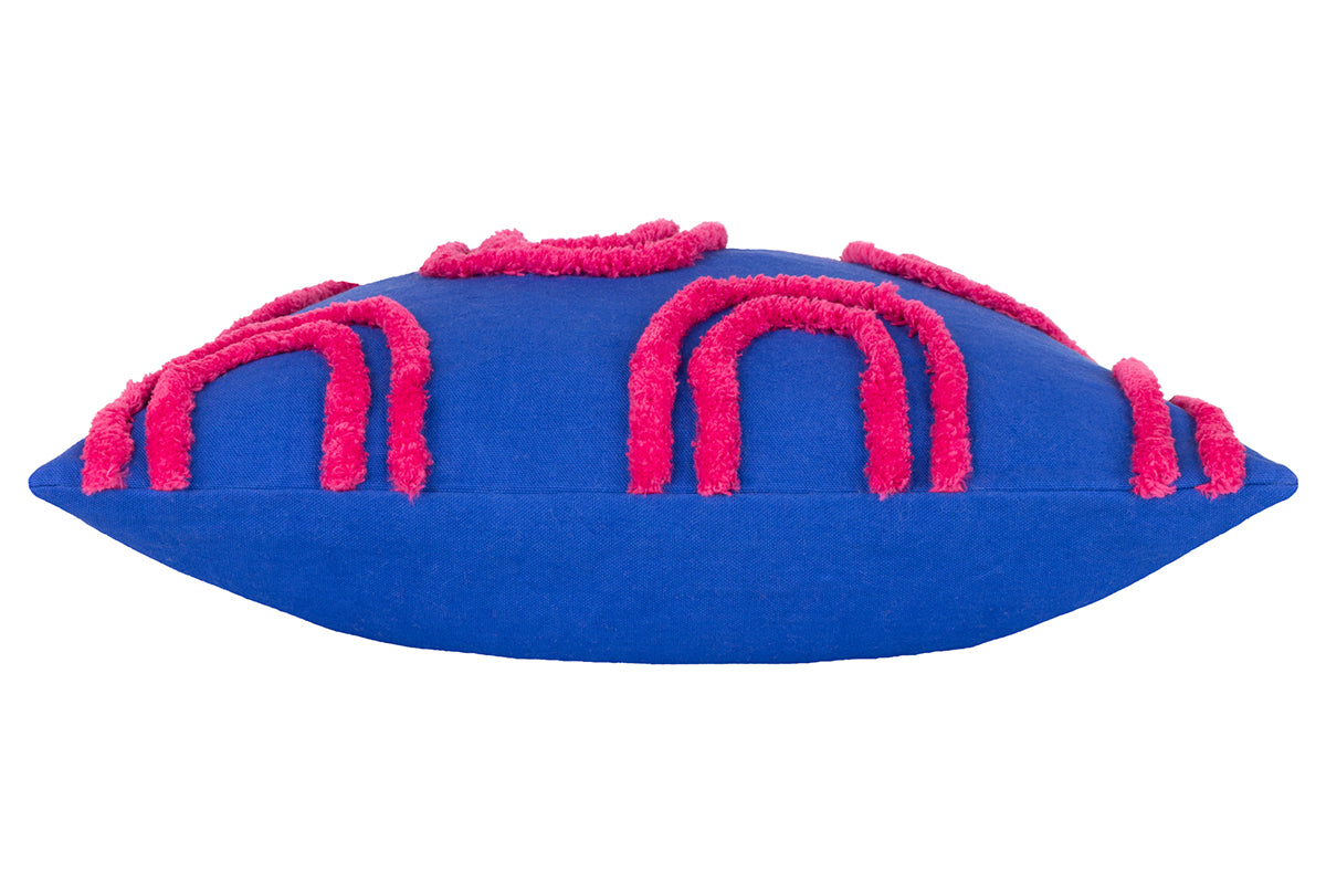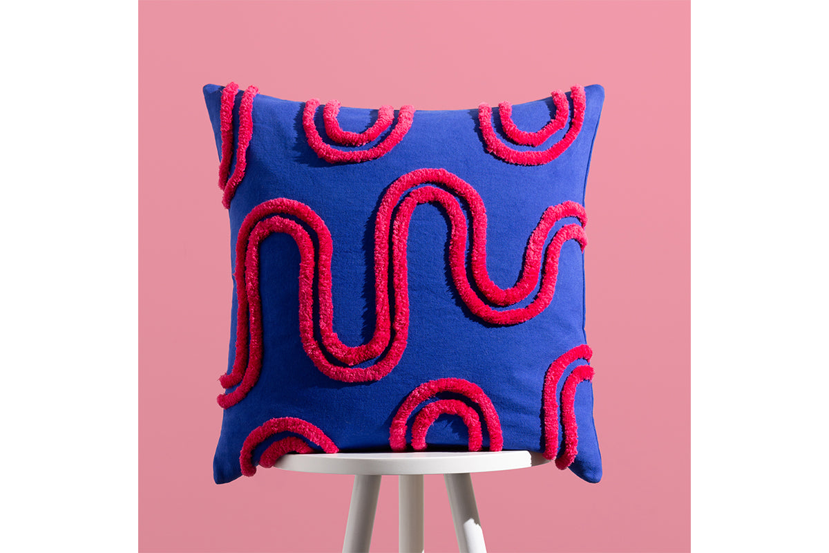 Bold, playful, and irresistibly tactile, the Archie cushion is designed to make a statement. Its vibrant pink base sets the stage for the raised geometric detailing in a rich, saturated red that snakes across the surface. The result is a modern, artistic piece that brings movement and personality to any room. Perfect for modern interiors or anyone who wants to add a pop of colour to their space!