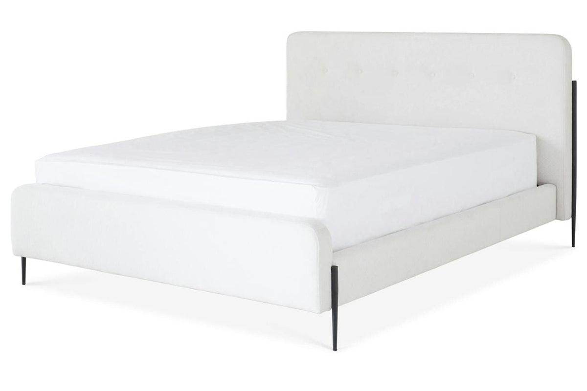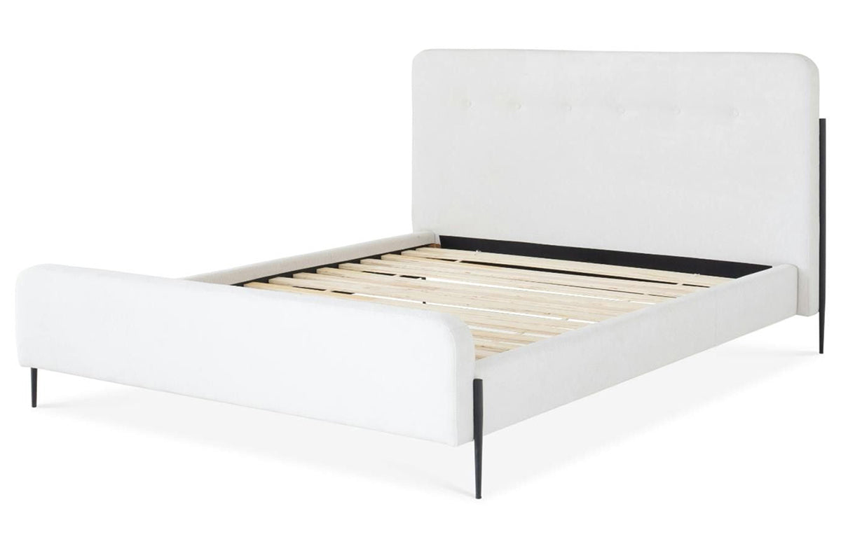 From top to bottom the Arnold bedframe features several eye-catching details that makes this bed the ideal showstopping centrepiece for your master bedroom. Features such as the padded headboard with button detailing that gives this frame a retro vibe, while the gorgeous fabric and sleek black metal legs give it a contemporary twist. The sturdy base is crafted from a mix of wood and metal that includes metal centre support and supporting leg ensuring this bed will stand the test of time and give you the most optimal sleep.