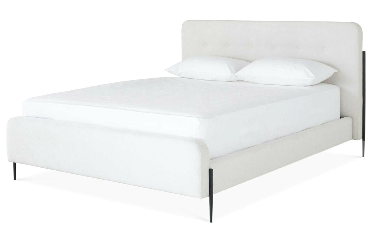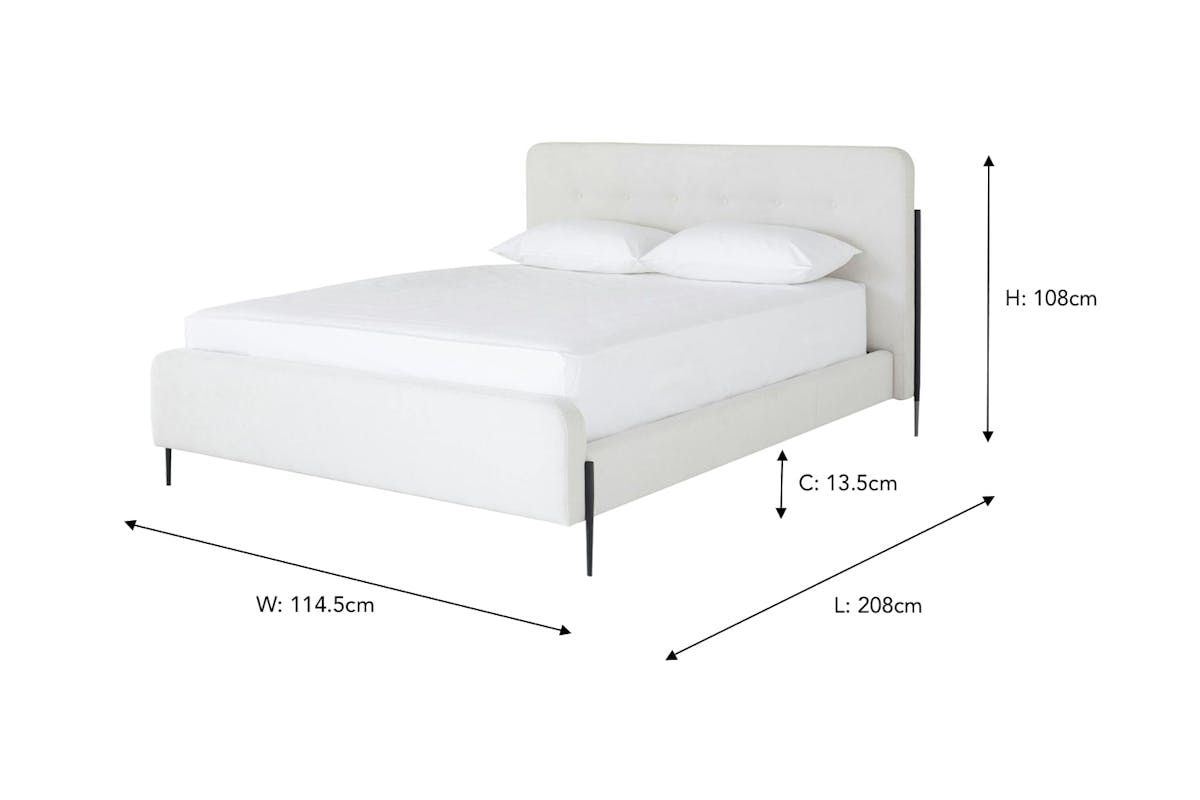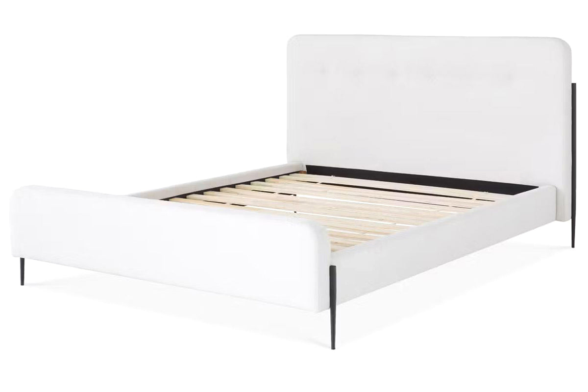 From top to bottom the Arnold bedframe features several eye-catching details that makes this bed the ideal showstopping centrepiece for your master bedroom. Features such as the padded headboard with button detailing that gives this frame a retro vibe, while the gorgeous fabric and sleek black metal legs give it a contemporary twist. The sturdy base is crafted from a mix of wood and metal that includes metal centre support and supporting leg ensuring this bed will stand the test of time and give you the most optimal sleep.