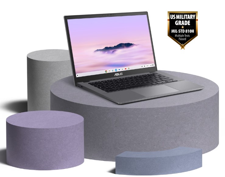 With structural reinforcements to boost chassis strength, ASUS Chromebook Plus CX34 is built to provide toughness for on-the-go lifestyles. It also meets next-level and industry-leading US MIL-STD 810H durability standards8, which are more rigorous and demanding than ever. Additionally, the device undergoes stringent in-house testing — including panel-pressure, shock and drop tests — to ensure maximal toughness, so you don’t have to worry about everyday knocks and bumps9.