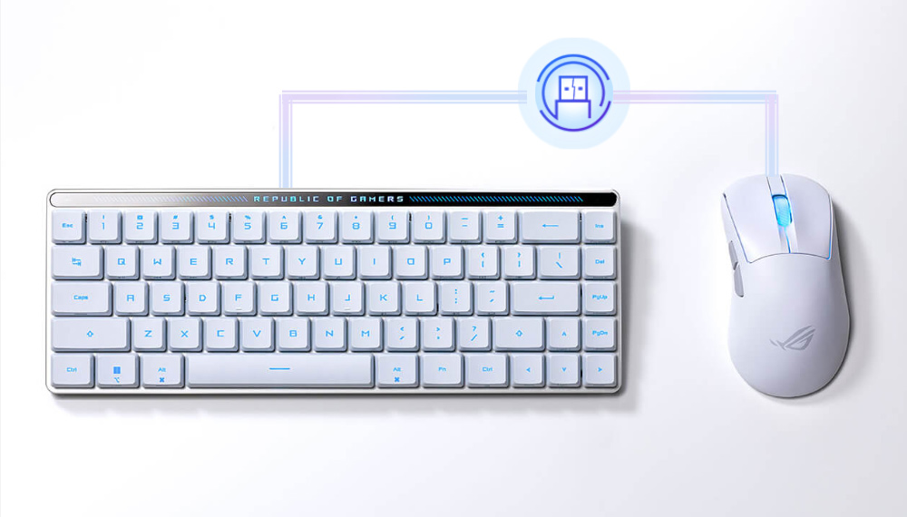 The ROG Omni Receiver allows wireless connection to one compatible keyboard and one compatible mouse at the same time with just one single USB receiver – without compromising performance.
