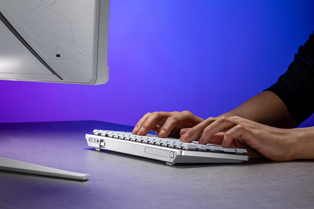 Measuring just 306 mm in length, ROG Falchion RX Low Profile masterfully incorporates a 65% layout into a 60% frame. Its 26.5 mm slim profile and compact dimensions free up desktop space for your mousing hand.