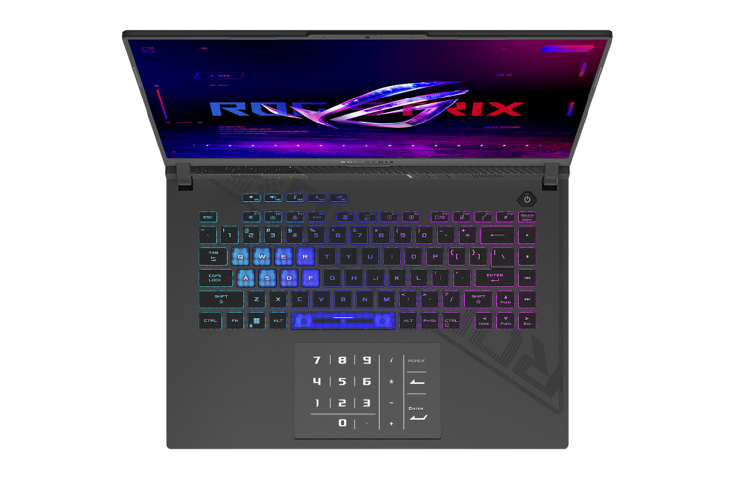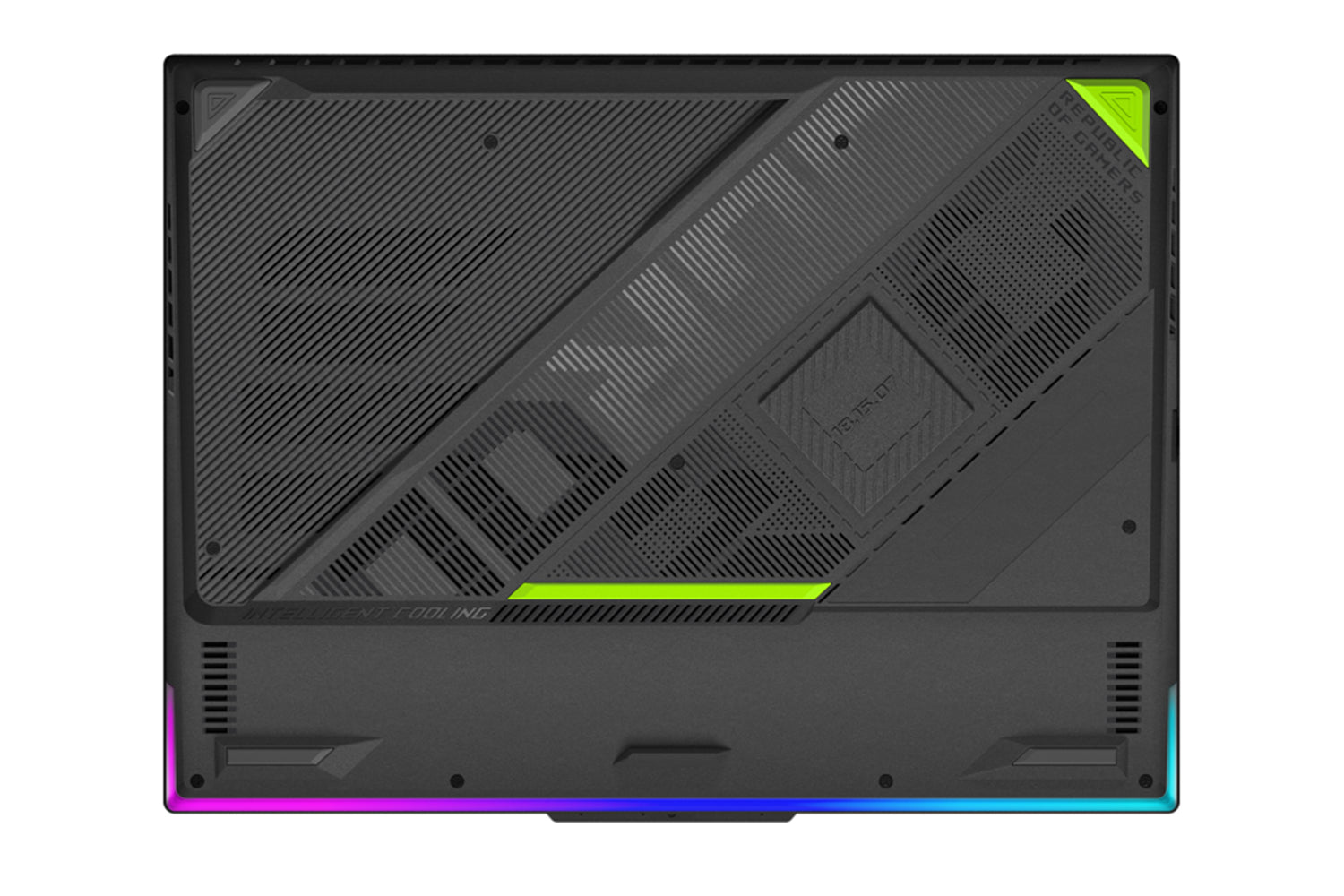 The Strix G16’s pixel art accents have been redesigned for 2023, giving the chassis more flavor and flair, while still being easily identifiable as an ROG machine from across the room.