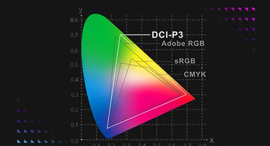 While the sRGB color space is the standard for most digital visuals, it only represents about 75% of the DCI-P3 spectrum used for professional filmmaking. Displays with complete DCI-P3 coverage offer a wide color gamut for more vibrant images, letting you see films and other media exactly the way they were meant to be experienced.
