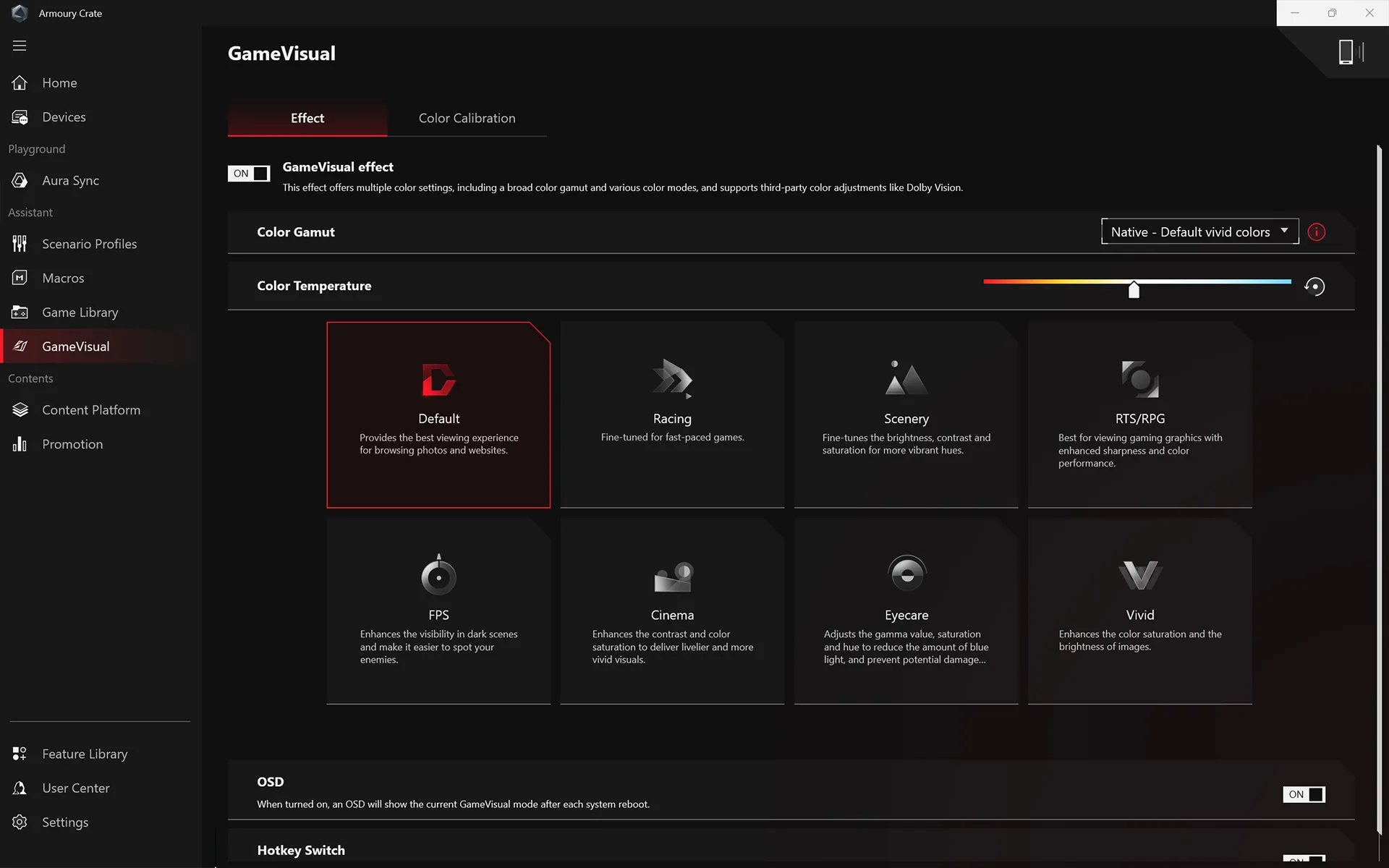 ROG GameVisual software offers six expertly tuned graphic modes designed to optimize your visual experience for specific game genres. First Person Shooter (FPS) mode, for example, enhances visibility in dark environments, allowing you to get the drop on any enemies lurking in the shadows.