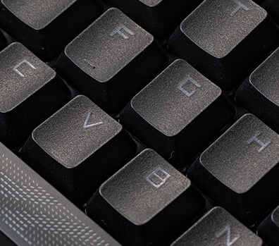 ROG PBT doubleshot keycaps provide a unique and premium feel, as well as offer long-lasting durability. Key design has been optimized with mid-height keycaps (similar to Cherry profile keycaps) and a shorter stem to reduce key wobble, and provide a more comfortable user experience.