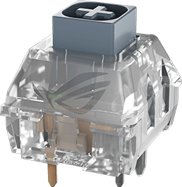ROG NX Storm mechanical switches V2 utilize composite POM material for the stem and PC housing to provide ultrasmooth and tactile keystrokes, and a walled-stem design enhances stability and prevents dust intrusion. Each switch is tuned and pre-lubed to ensure crisp, clicky keystrokes.