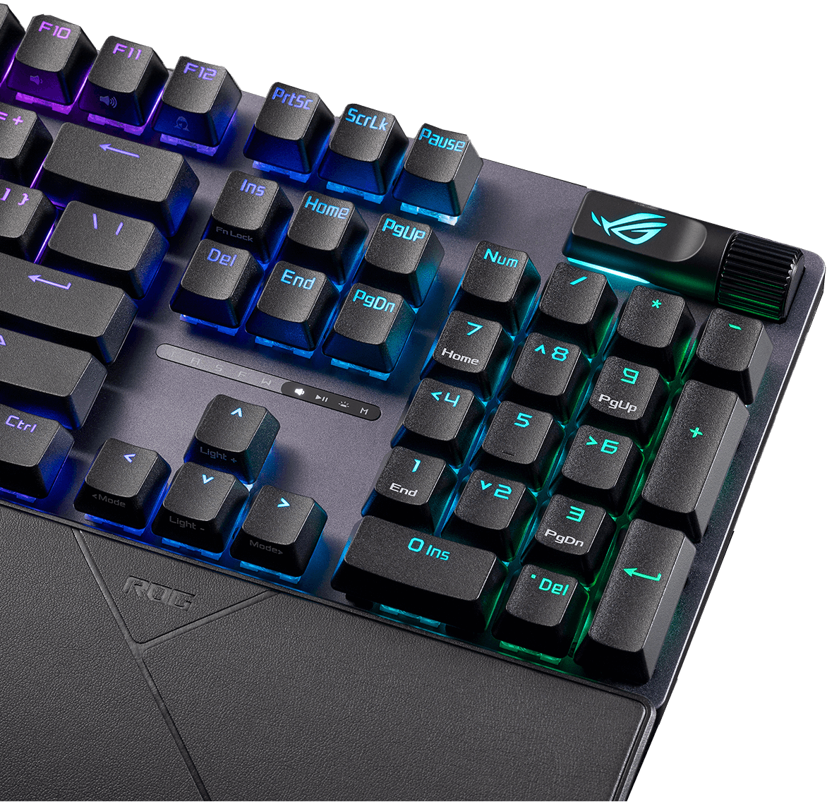 UV-coated spacebar with special ROG markings and three underside RGB LEDs.