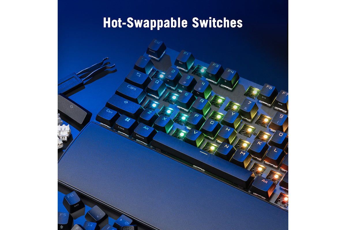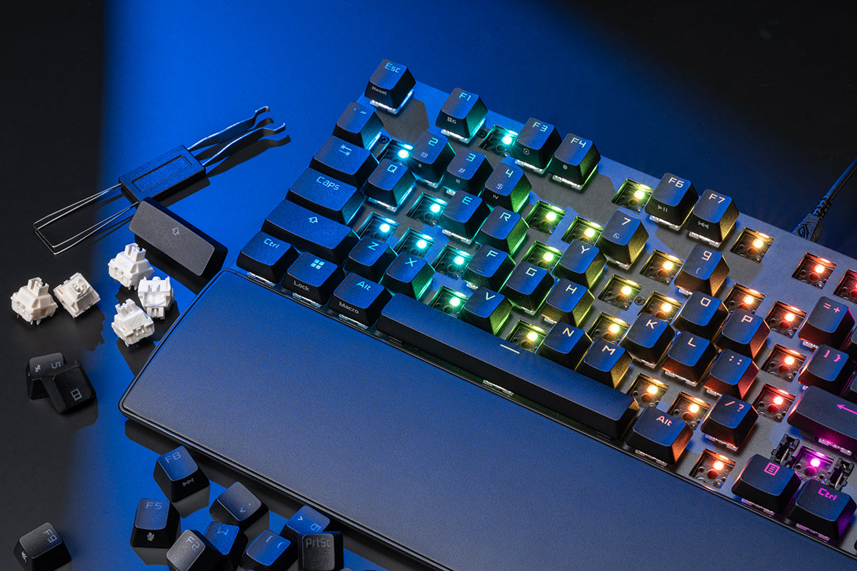 Users can swap and install their preferred switch type for a unique, customized feel.