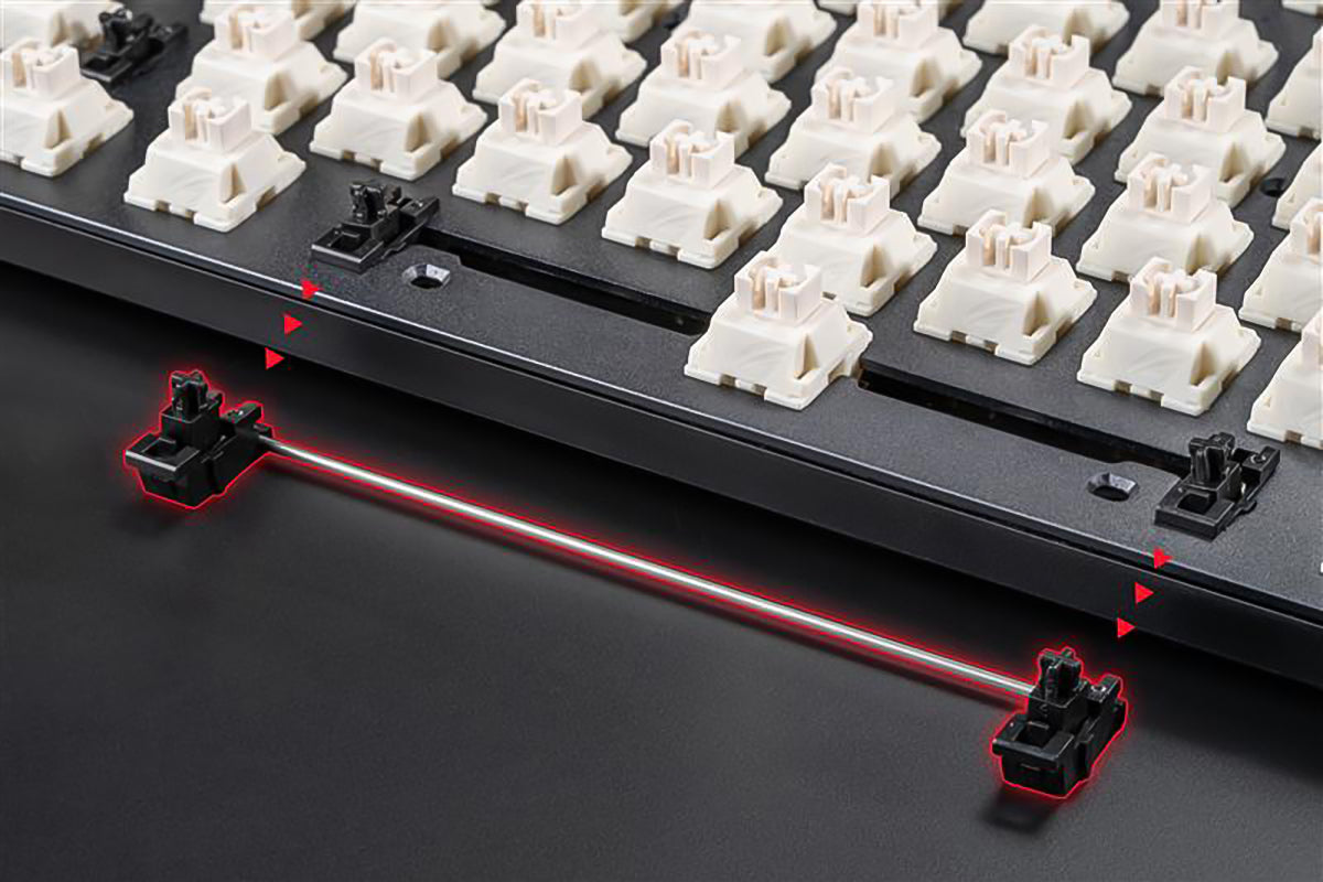 A specially tuned, lubricated switch stabilizer greatly reduces keystroke friction, compared to traditional stabilizer mechanisms, giving you smooth and stable keystrokes for longer keys such as the Spacebar, Shift, and Enter keys.