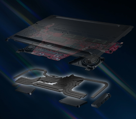 Every powerful laptop needs an equally powerful cooling solution. The Zephyrus G16 features cutting-edge ROG Intelligent Cooling to make sure it’s always operating at peak performance. Featuring Thermal Grizzly’s liquid metal thermal compound, up to 6 heatpipes, targeted inward airflow, and 84-blade Arc Flow Fans, the G16 can handle even the most intensive gaming sessions with ease. This overbuilt cooling solution has another benefit during low power tasks -- truly silent operation with 0dB Ambient Cooling. The machine will passively dissipate heat, with the fans turning back on automatically as needed.